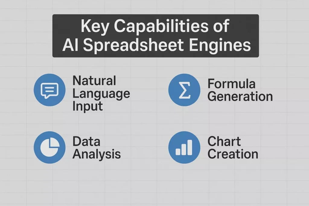 AI spreadsheet engines can convert natural language instructions into formulas, build charts, clean data, summarize insights, and automate multi-step tasks. They help users work faster by eliminating the need to manually write functions or format sheets.